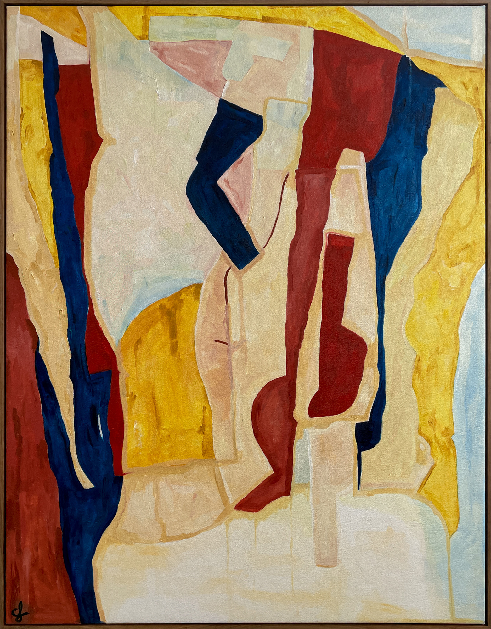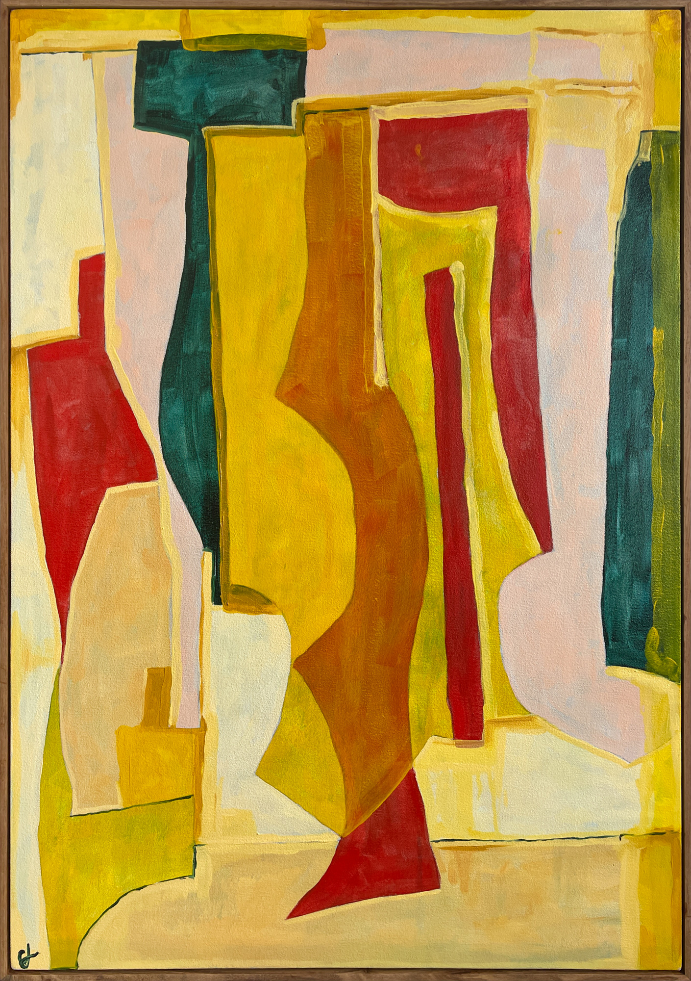 2023, Oil on CanvasJohnson’s series is a continuation of Oddment Batch, whose compositions are drawn from offcuts. The fabric remnants are collected from tailors and clothing designers. One batch was kept aside by a Senegalese tailor who worked in the artist’s neighbourhood: “Bara made custom ceremonial clothing, spending hours with clients selecting fabrics and finalising fits to create garments intended to mark moments in time.” Johnson is compelled by the quiet expression of a practiced hand – the quick, sharp gestures of scissors on cloth. The awkward remainders call up the curve of a neck here, the widening of a hip there. They are traces of an intimate engagement between bodies and cloth.